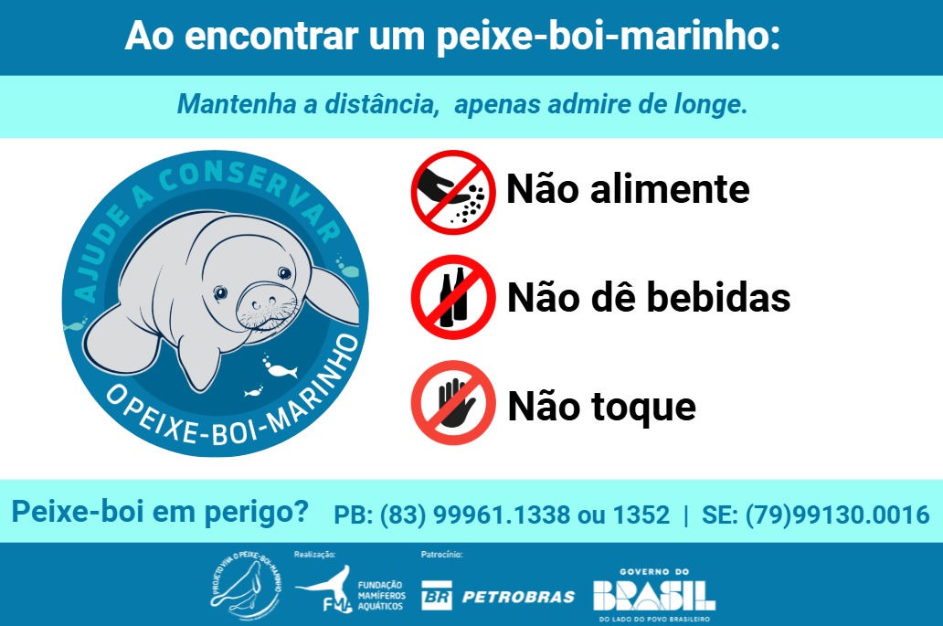 O Projeto Viva o Peixe-Boi-Marinho, realizado pela Fundação Mamíferos Aquáticos com patrocínio da Petrobras e do Governo Federal, por meio do Programa Petrobras Socioambiental, reforça o pedido para que a população não se aproxime nem interaja com o animal. Manter distância é fundamental para preservar o comportamento natural da espécie e garantir a segurança de todos.